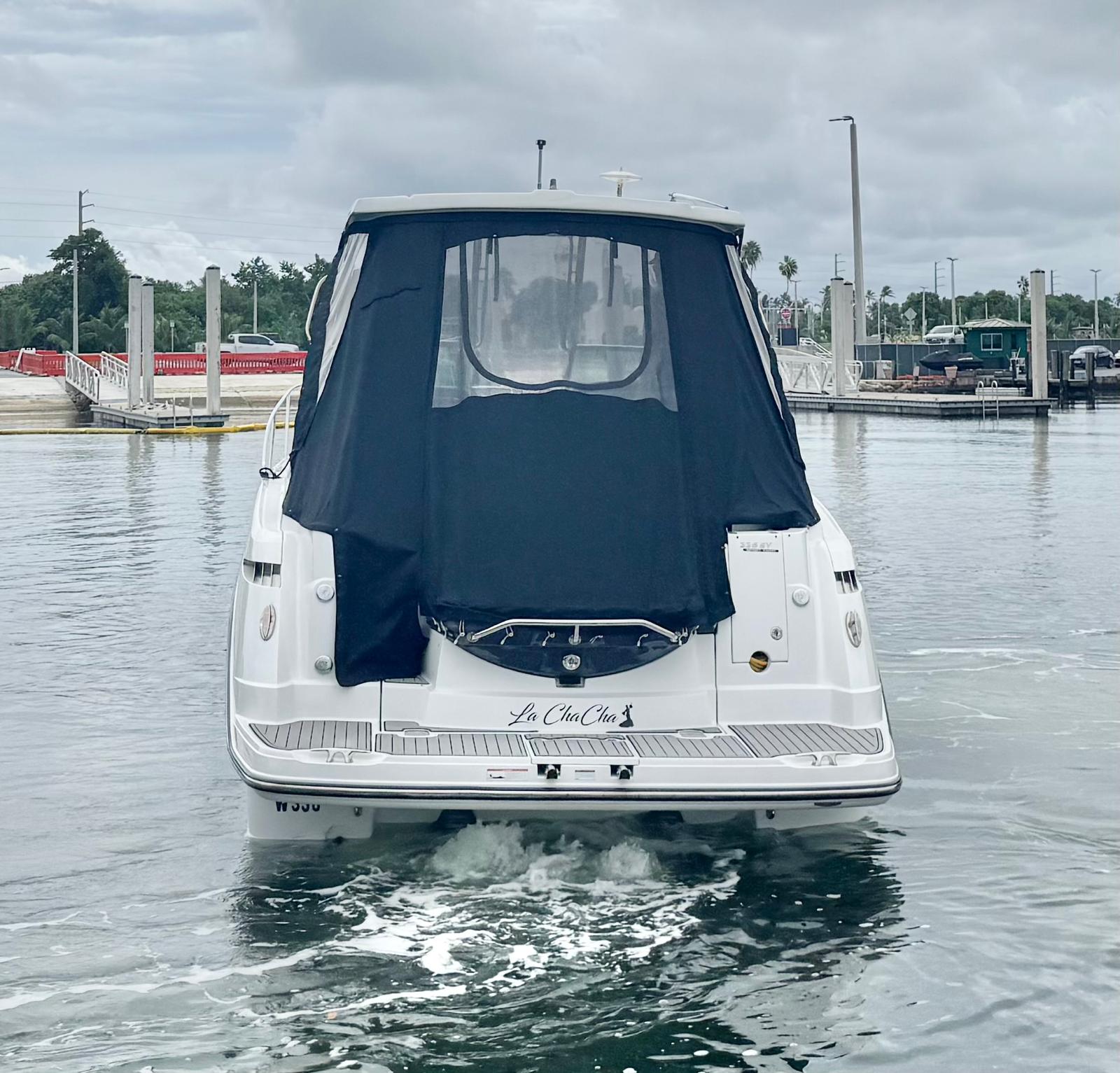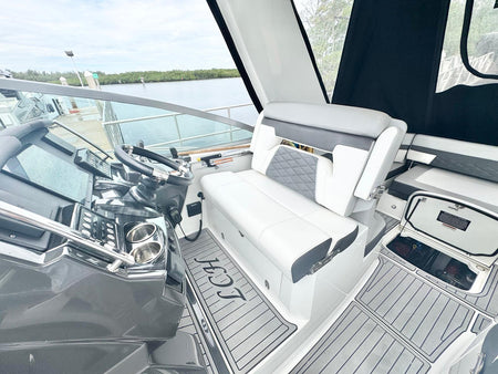 The 335 Sport Yacht is designed for both exhilarating days on the water and comfortable overnight stays. The spacious cockpit features ample seating for entertaining, a wet bar, and a versatile sun lounge that can be configured for relaxation or dining.