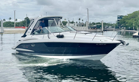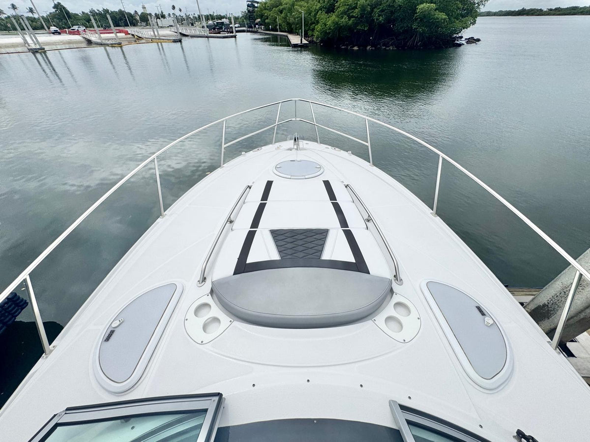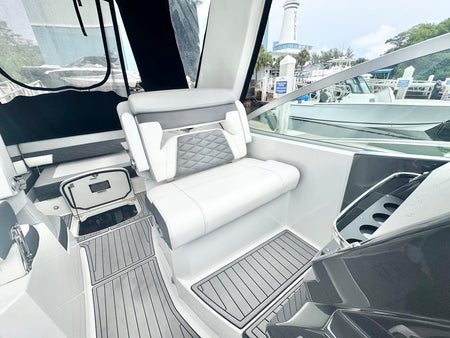 The performance of the twin Volvo Penta 300's is outstanding, providing an ideal balance of power and efficiency. With just 147 hours of use, these engines are barely broken in, ensuring years of reliable performance. This vessel has been kept in pristine condition and shows like a new boat. It has been stored indoors at Haulover Marine Center, and the owner has a strict routine of rinsing the boat and flushing the engines after every single use—a true testament to the exceptional care this vessel has received.