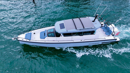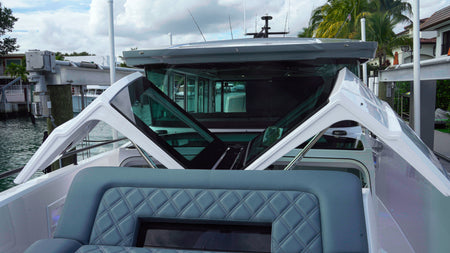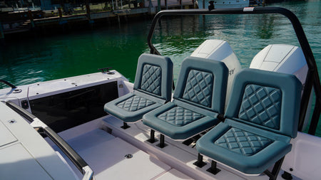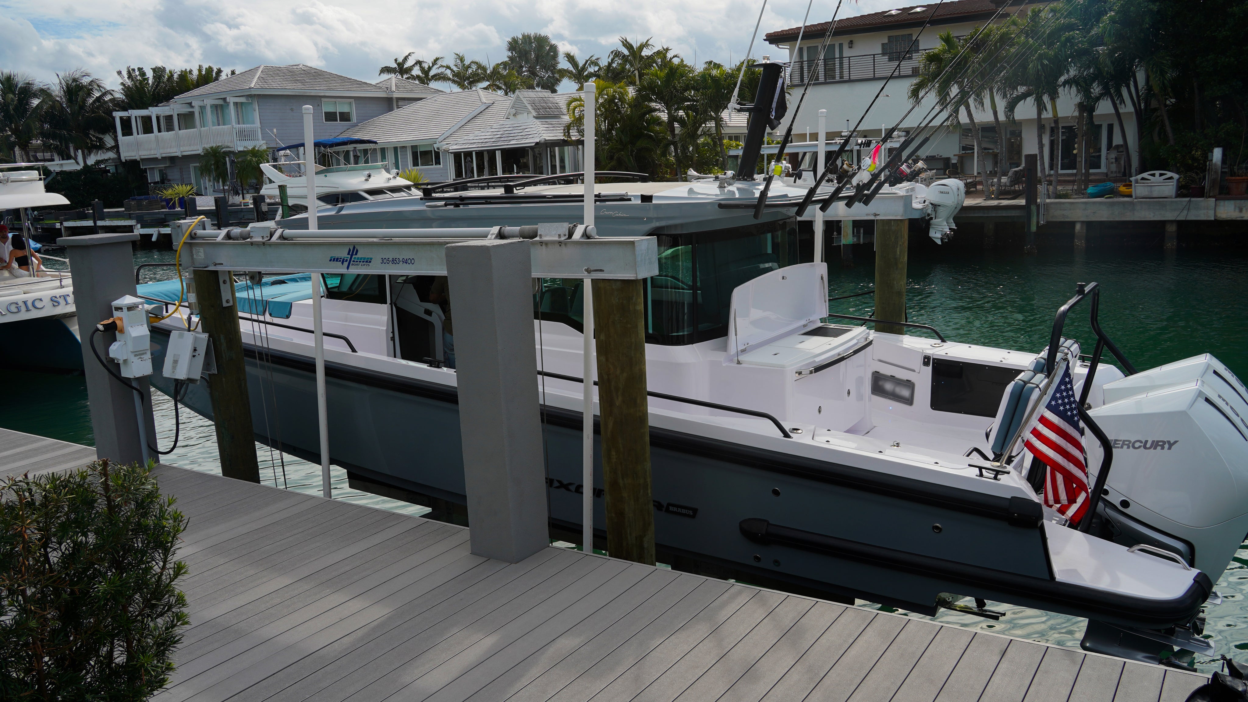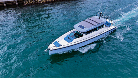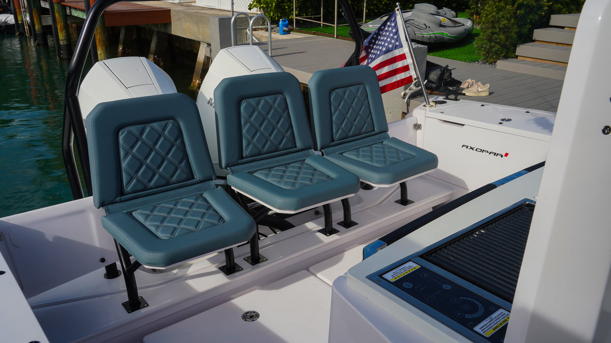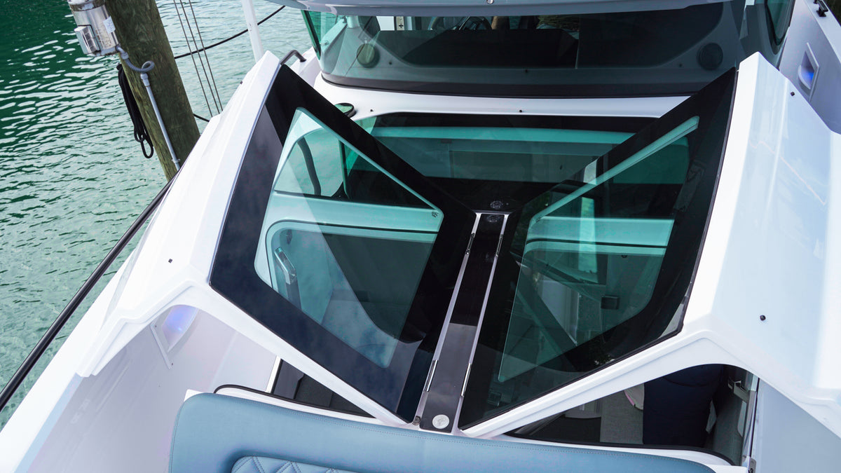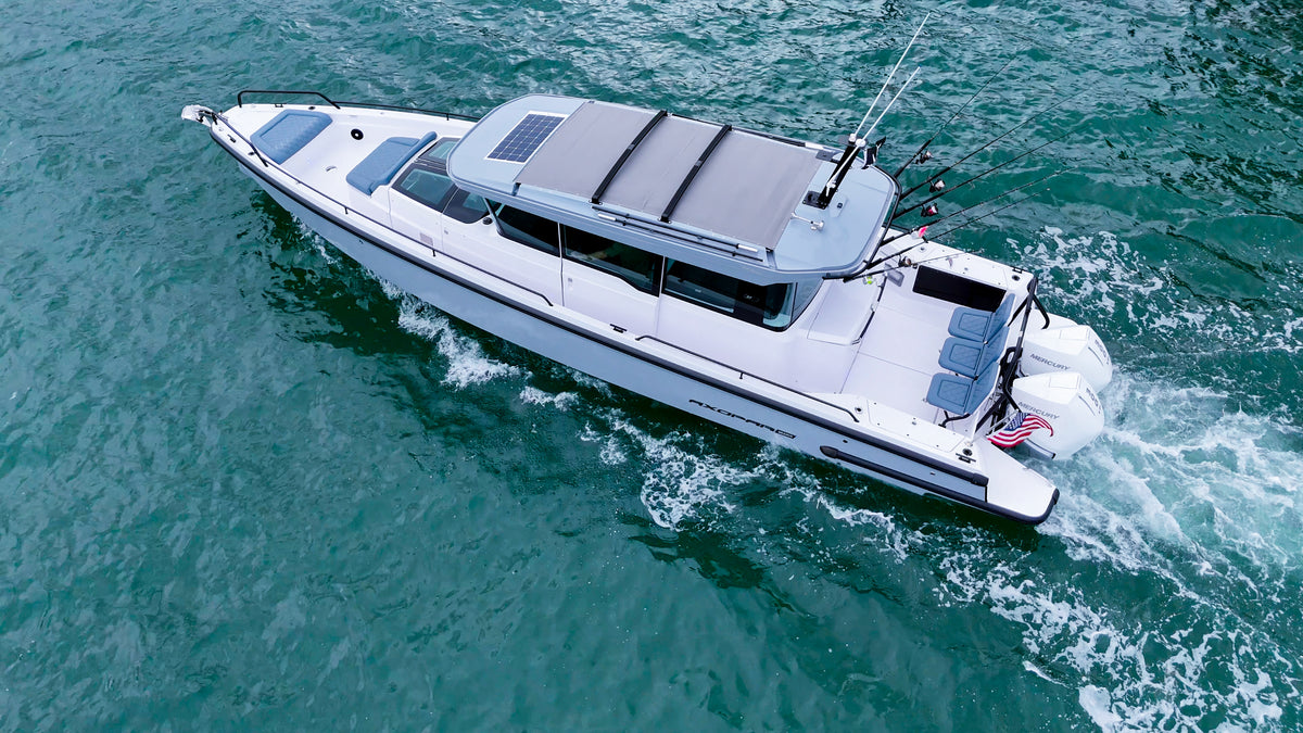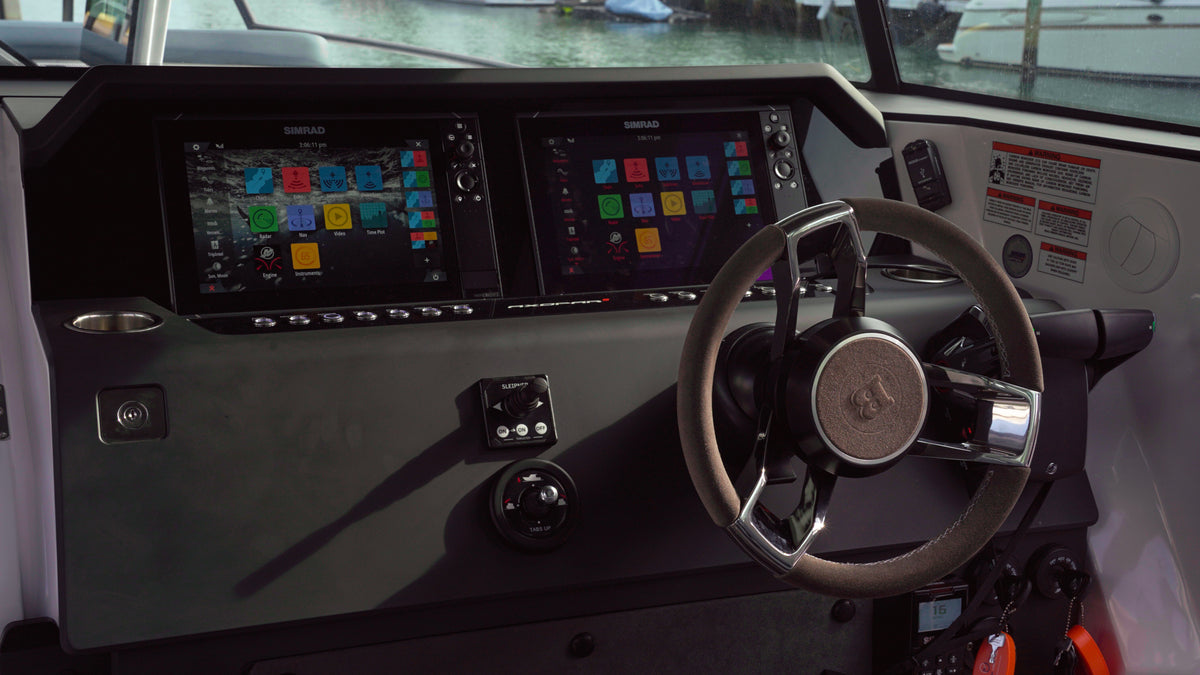 This model combines the functionality, ease of movement, social outdoor and indoor spaces and versatility of outboard walkaround centre-consoles with a spacious, fully enclosed weather proofed cabin, that with distinctive looks challenges traditional perceptions of cabin boats. Including a electric grill in the wet bar.